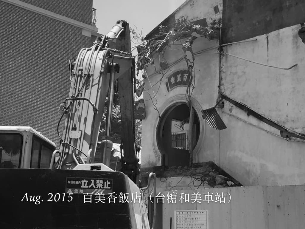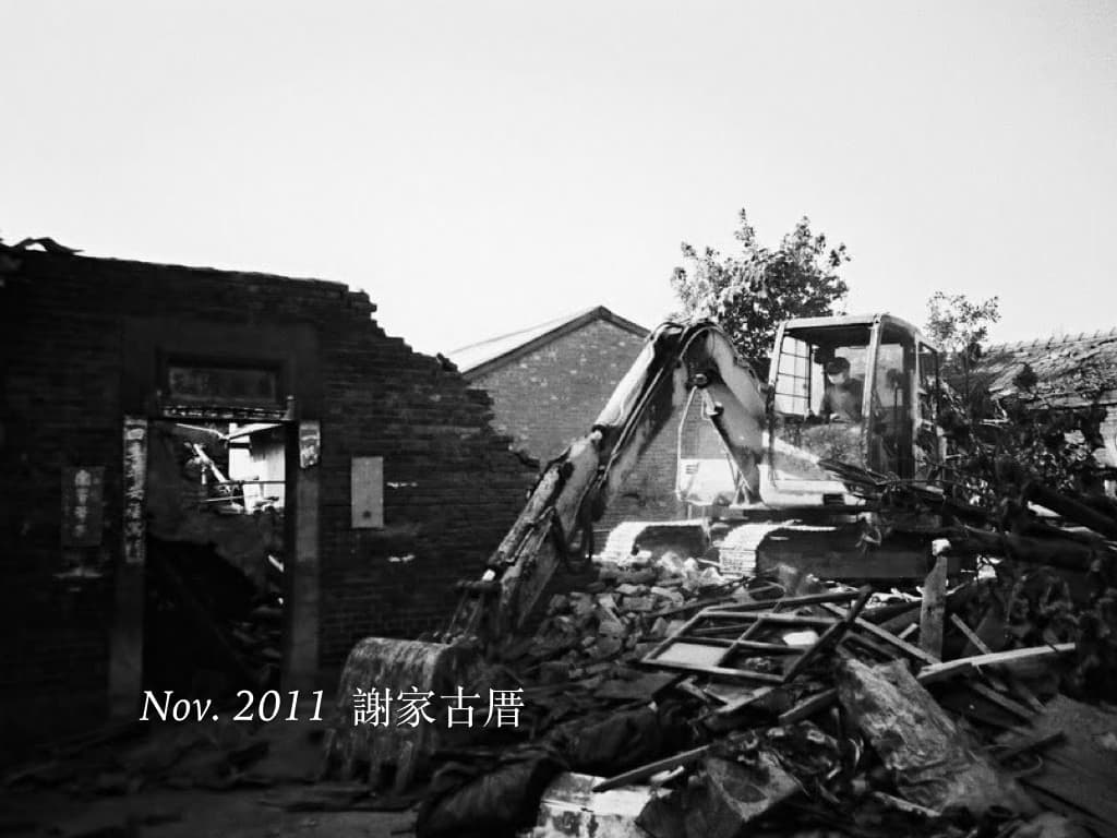 簡報的一開始,我舉了乘載自己兒時記憶的外婆家當例子。2011年的冬天,因為家族長輩過世後,需要處置家族財產,而拆除了存在八十多年,由外曾曾祖父起造的三合院。曾經還浪漫的以為,返鄉可以跟記憶中的老屋慢慢變老,但一切都只能成為回憶。拆除那天外婆很是無奈,自從嫁到外公家就是在這棟三合院裡生活著,而當你發現記憶是重要的,就算一片門扇你也會想要保留。